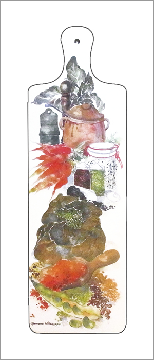 植物柄の表面がリビングやダイニングに華やかな彩りを添えます。裏面は木質のまな板になっており、チーズやパン、ケーキ、果物等の調理に。プレゼントにも最適です。